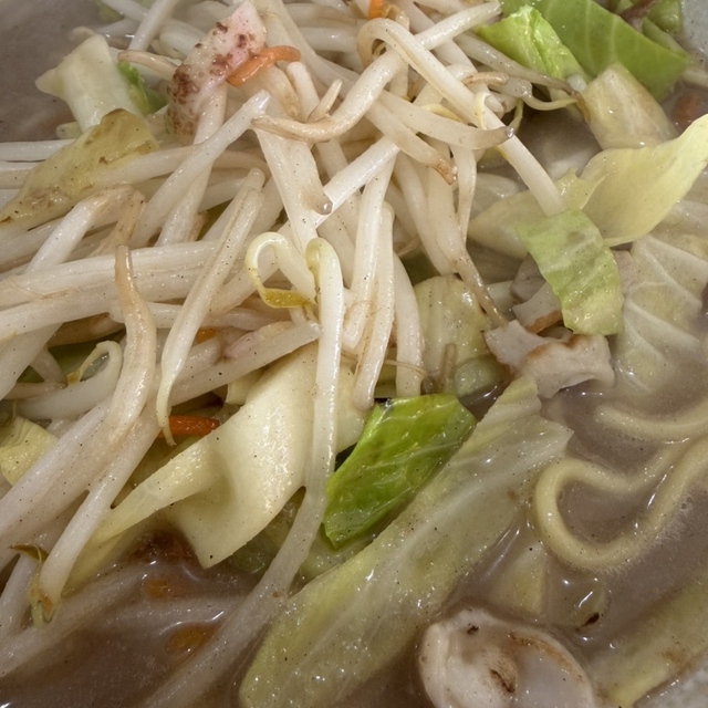 こちらはコショウの効いたスープで有名なお店だと前知識を入れて来店しましたがいざ食べるとバコーンと胡椒!しかし食べ進めるとコショウの香りが良い感じで馴染んできて大変美味しいです。コショウは効いてますけど唐辛子の様に食べられない辛さにならんので、コショウの良い辛味と香りにスープが馴染んでええな。沢山入っているキャベツなどのシャキッと炒められた野菜を食べると甘さがくっきりとして、野菜も美味い!段々汗も出てくるのだが夢中で完食しました